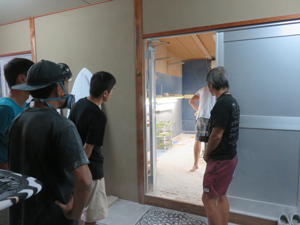 近くのSMAC植田さんサーフボードファクトリーのシェイプルームをお借りして